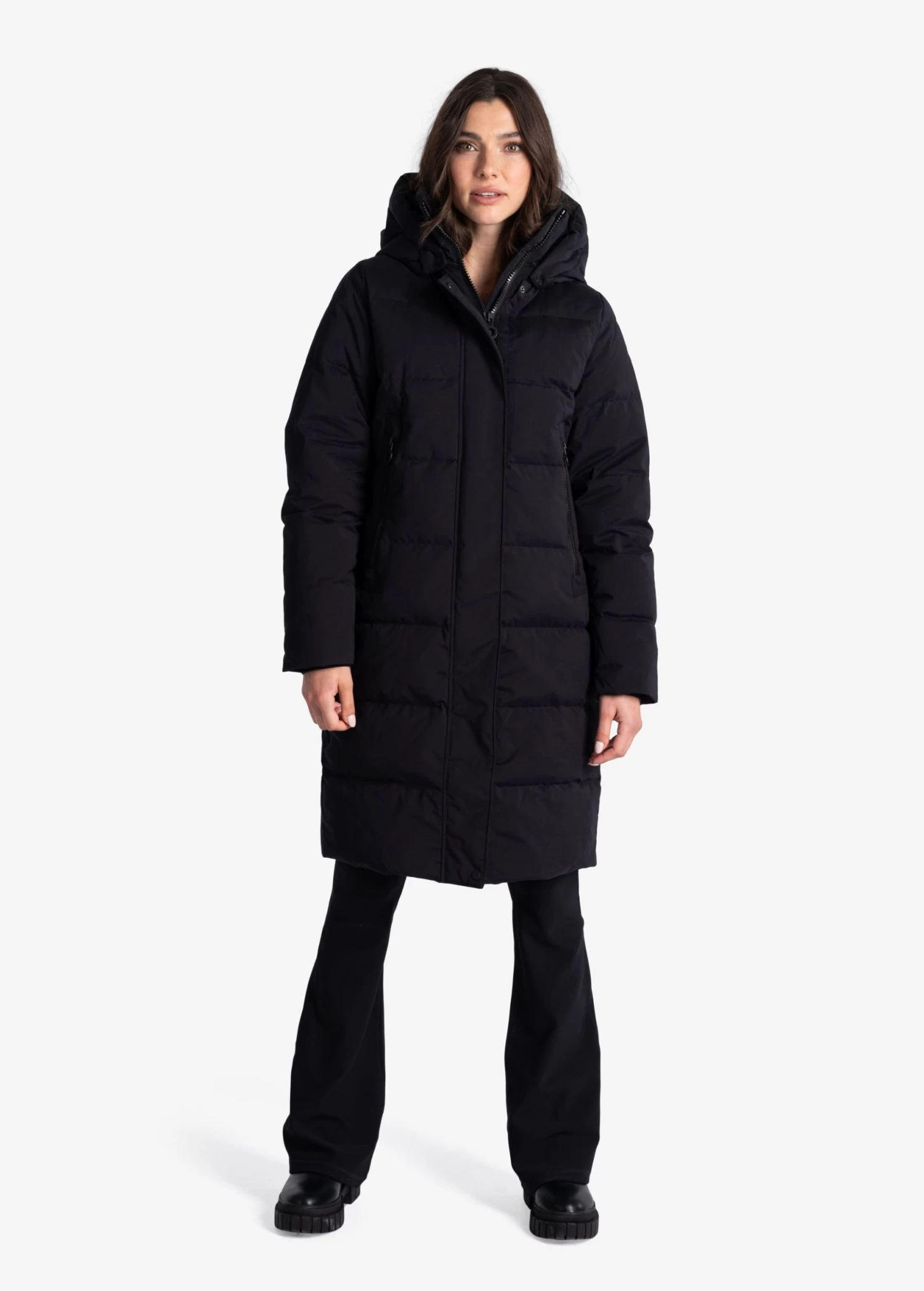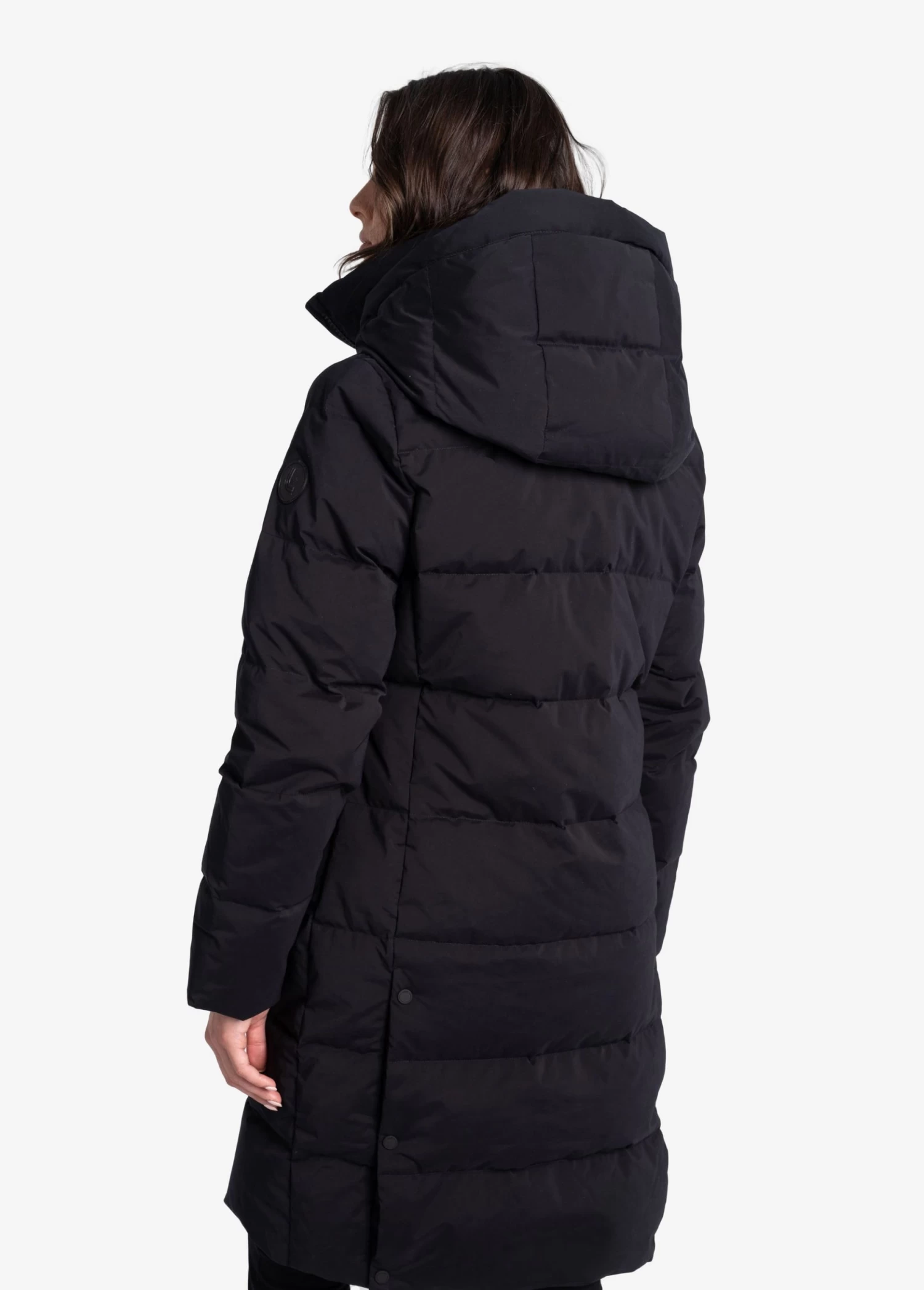 Achieve full-body warmth with this longline city jacket. Featuring deep pockets and inner backpack straps for easy portability wherever you go.