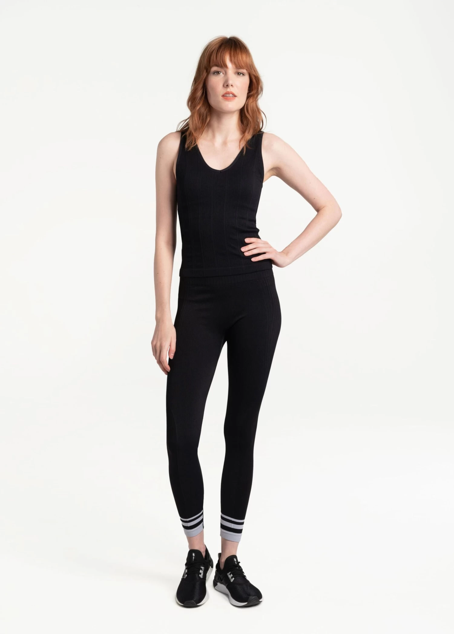 Seamlessly move through pose after pose. Made from recycled fabrics, we designed this seamless V-neck tank top so you won’t feel anything but your practice.