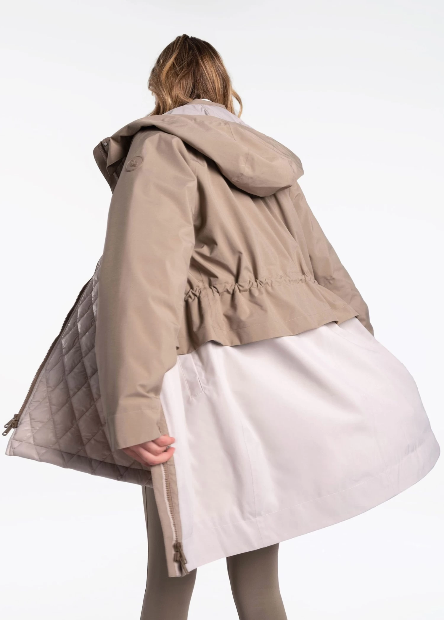 The Aubrey Insulated Jacket is a seasonal must have. The three-in-one jacket is our most versatile piece with an outer fully seam sealed shell, quick-drying which is also breathable, waterproof and durable water repellent. The relaxed fit is constructed with an inner waist adjustment system, two way zipper and two-way centralized front zip plus removable/adjustable hood.