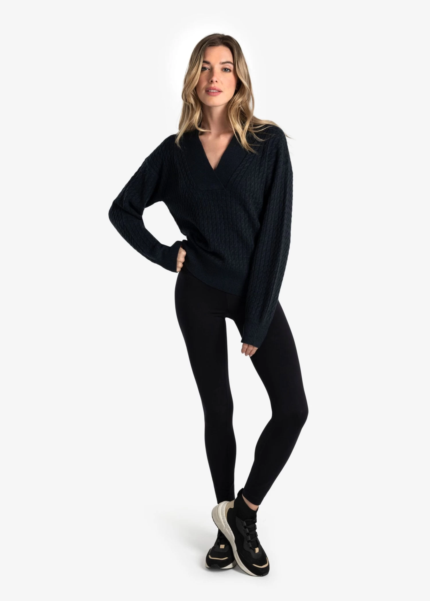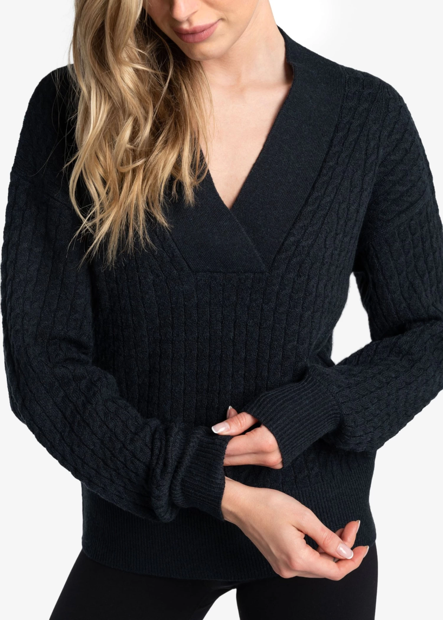 LOLE Camille V-Neck Sweater – Black Heather