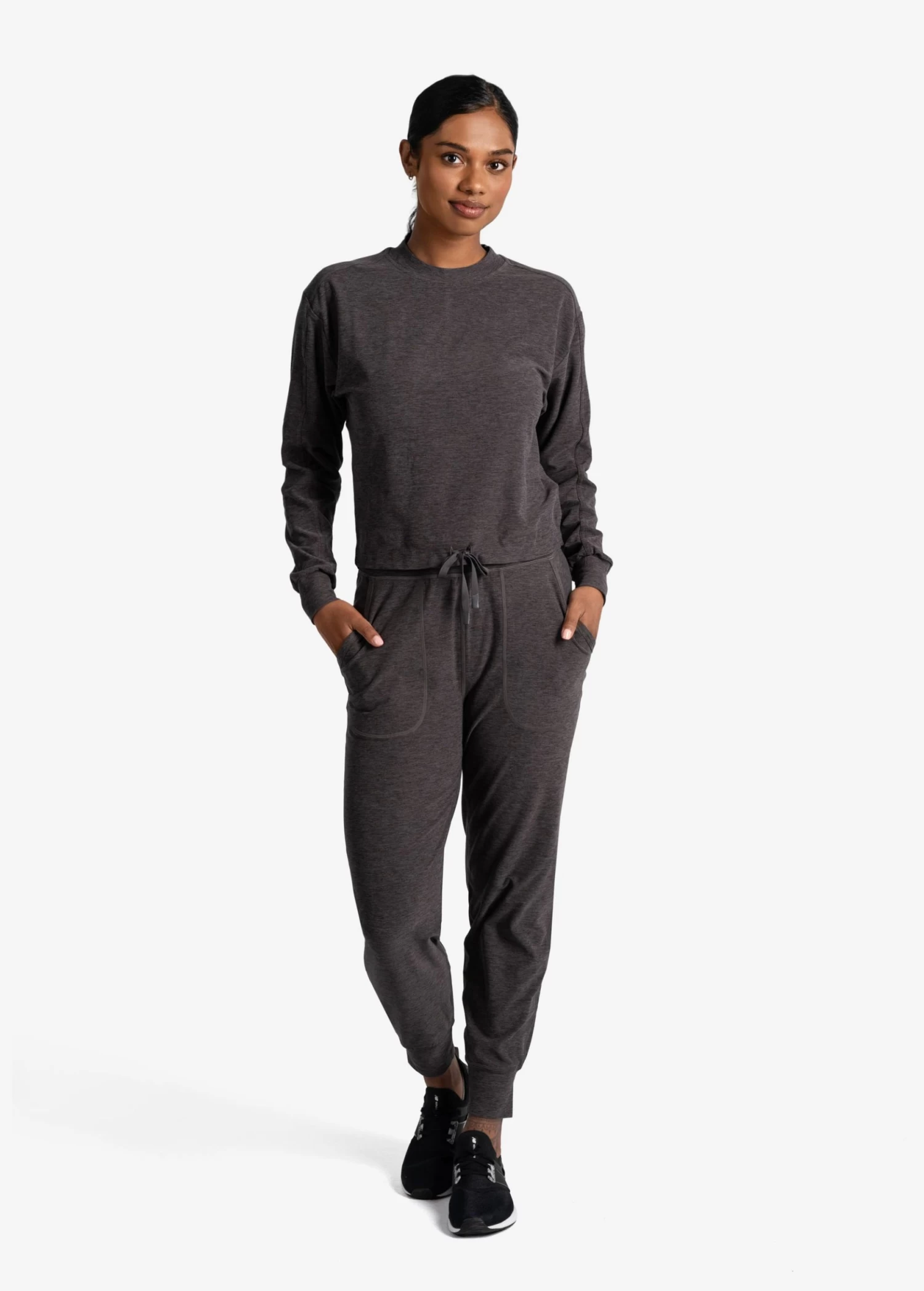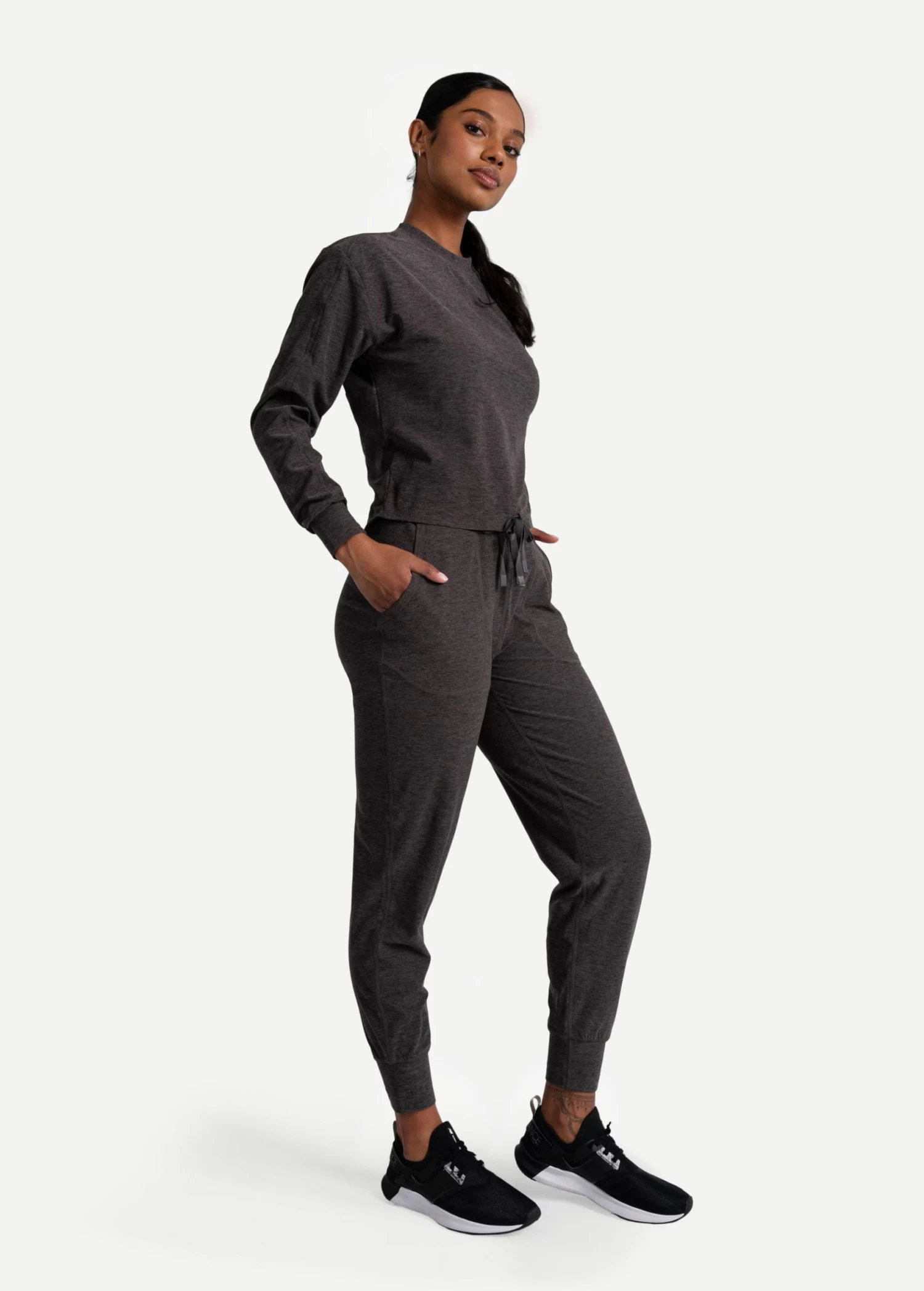 Refresh your cozy basics with this jogger pant. Made with GRS-certified recycled fibres and a soft brushed handfeel, this modern take on sweatpants takes you into another dimension of comfort.