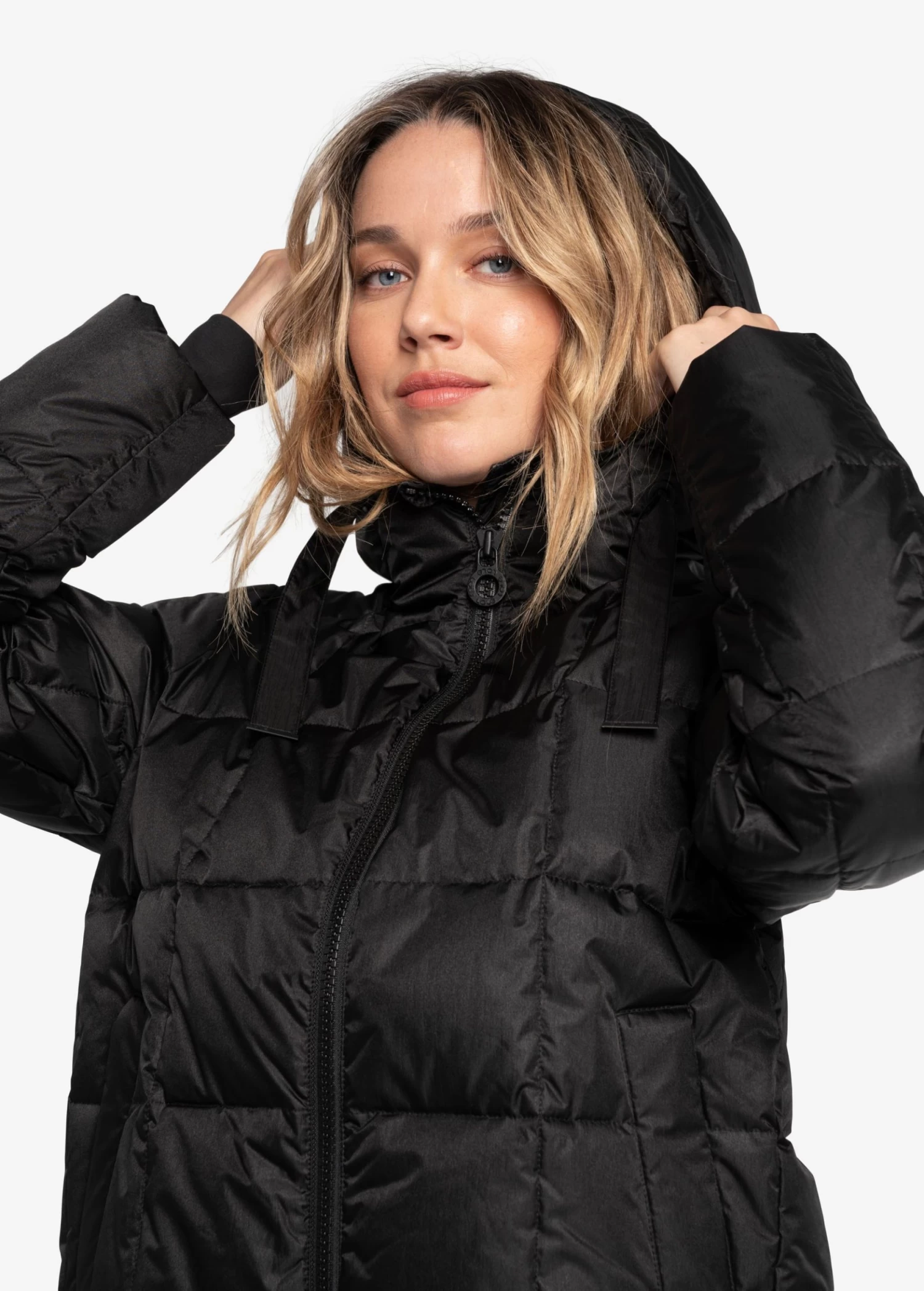 Reach cloud nine in this comfy puffer jacket. The hood and collar extend as one, and the ski pass pocket on the sleeve makes hitting the slopes easy.