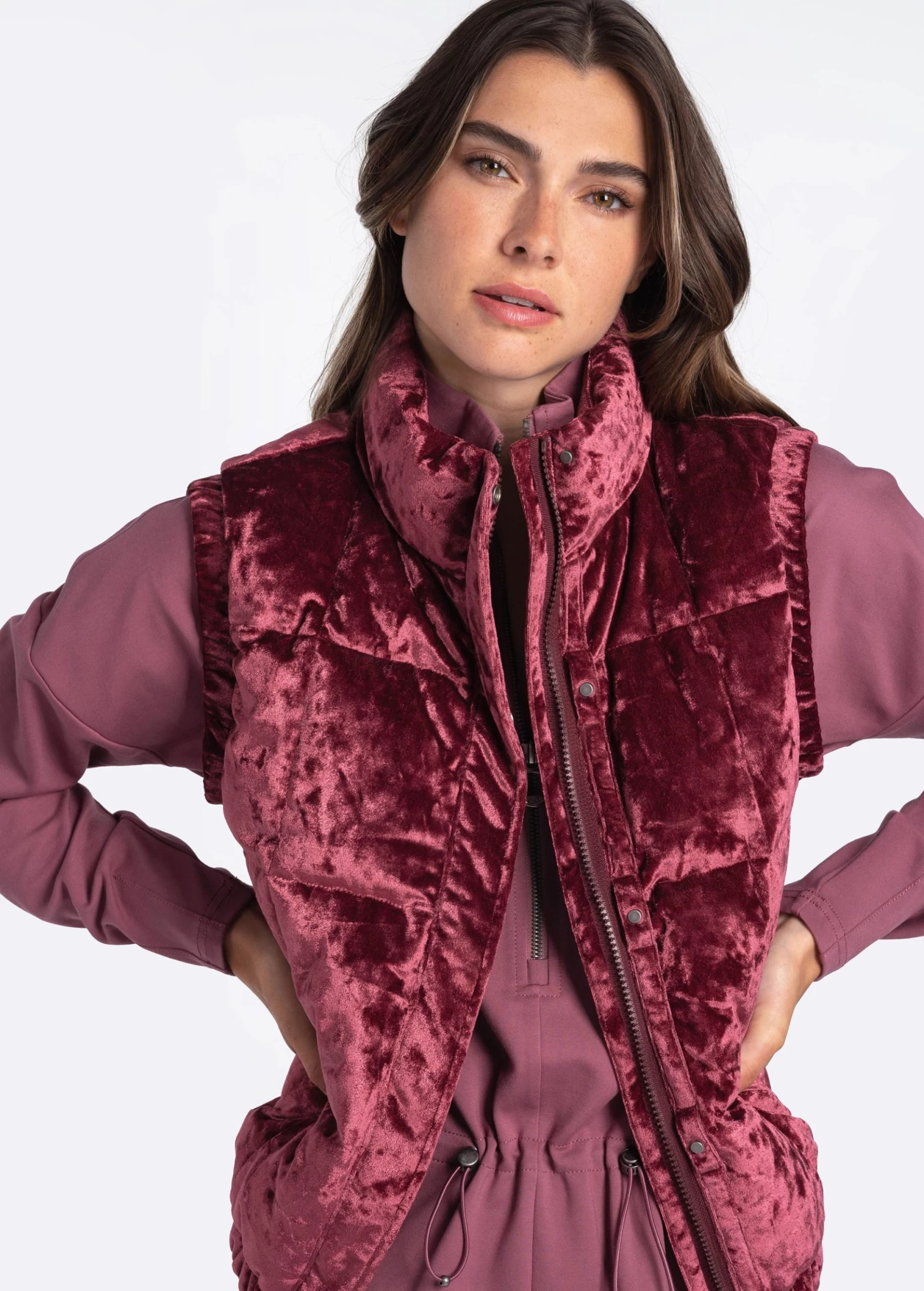 The boxy cut Rose Synth Down Vest is perfect for in-between seasons worn alone over your favorite winter knit or utilized as a key layering piece. With a soft velvet hand-feel the vest is breathable, waterproof and water repellent. It features Loftech® Insulation, with the ability to withstand up to -10 °C makes the Rose perfect for transitional weather.Â